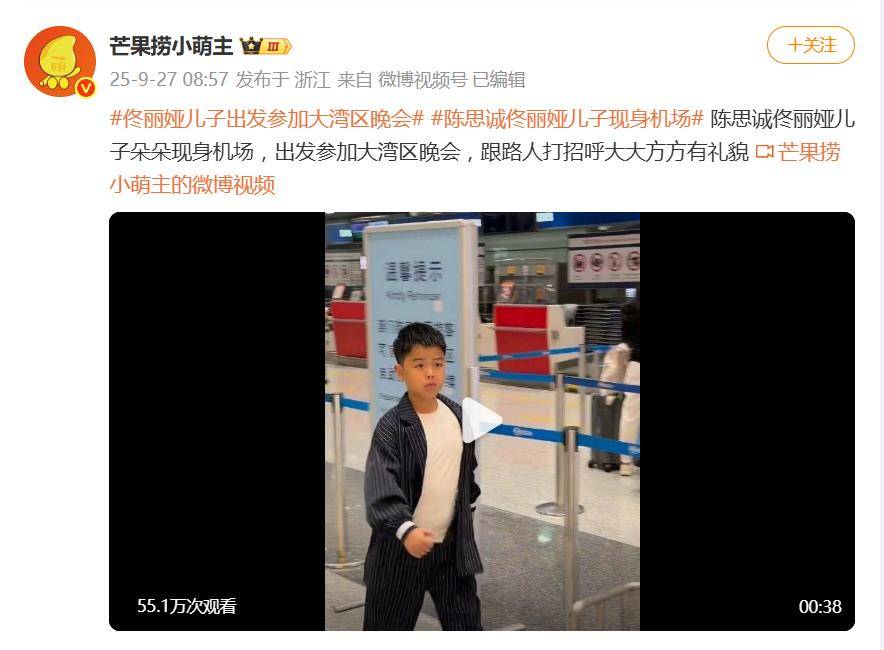 9月27日,佟丽娅9岁的儿子朵朵(晚会官宣名“陈奕橦”)现身机场前往澳门的画面,悄然在社交平台刷屏。身穿休闲装、主动向路人打招呼的他老钱庄,被网友评价为“大方有礼貌”“气质沉稳得像个小老干部”。然而,这份超出年龄的淡定,却在他登上大湾区晚会舞台后,引发了一场关于“星二代资源”的争论。
