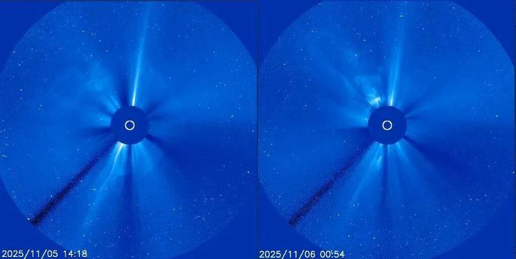 北京时间11月5日晚间19时19分以及11月6日的清晨06时07分,太阳再次耀斑两连暴,最大强度分别为M7.4和M8.6级,并伴随较为明显的日冕物质抛射(CME)。